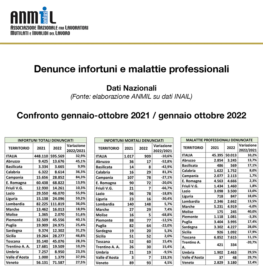 Secondo gli ultimi Open Data INAIL, nei primi nove mesi del 2022 in Italia sono stati denunciati 536.002 infortuni sul lavoro, con un incremento del 35,2% se comparati alle denunce dell’anno precedente.